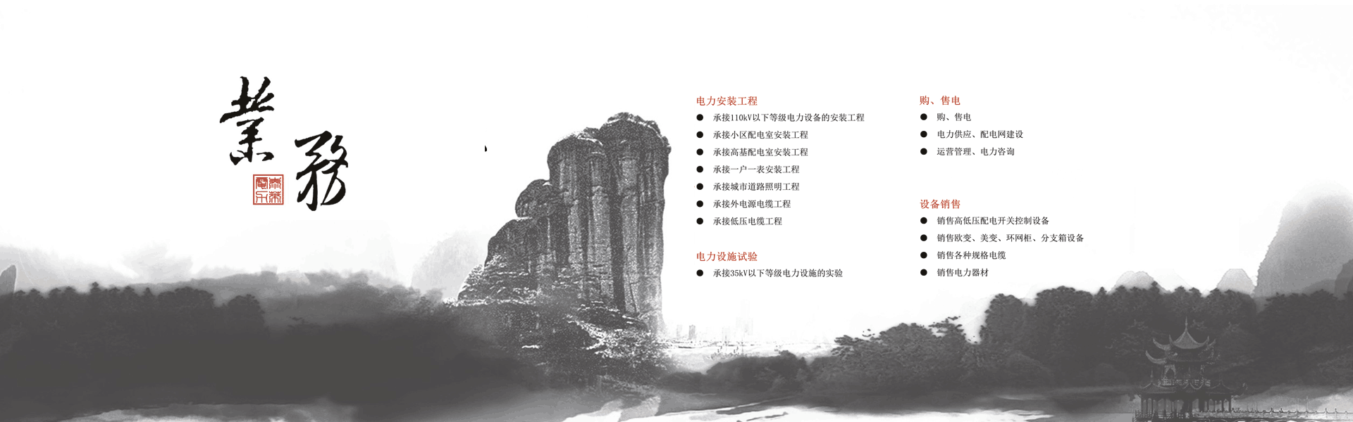 集高、低壓電力工程設(shè)計、安裝 、維護、試驗為一體的專業(yè)電力施工企業(yè)。